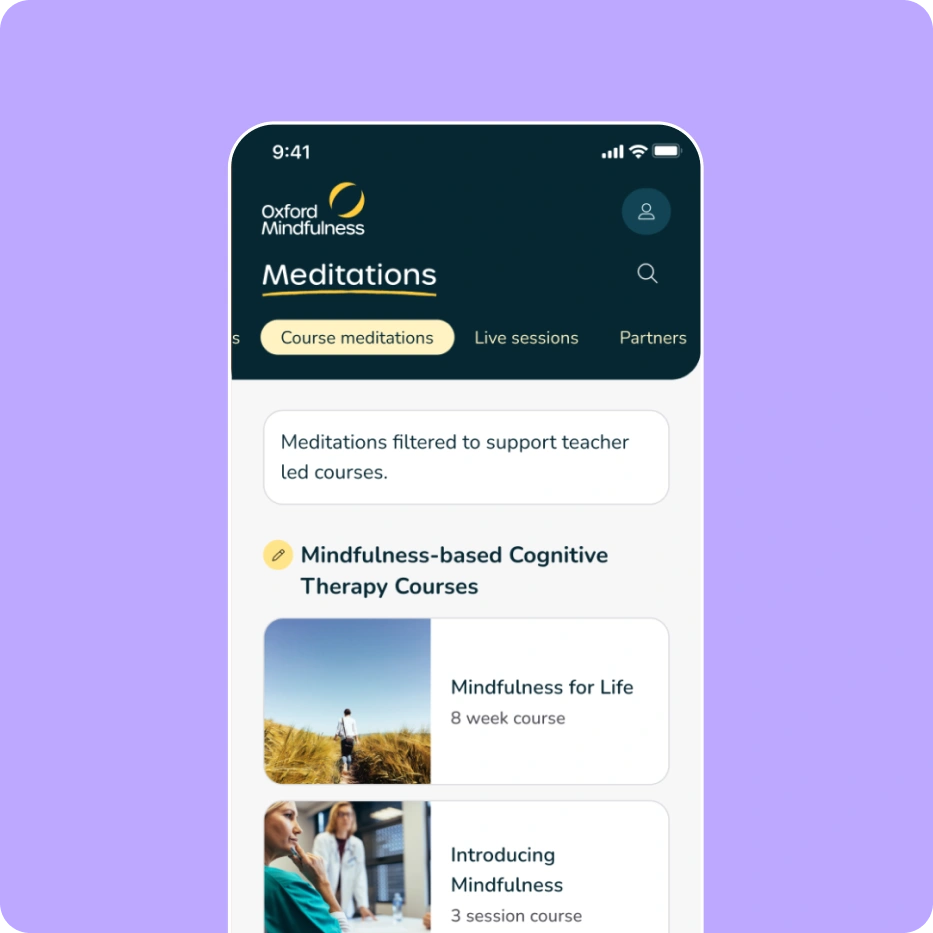 The team brought the product to life, ensuring Oxford Mindfulness was engaged every step of the way. The team refined the initial concepts, creating detailed mockups that represented the final solution, along with interactive prototypes for key screens. We kicked off with the MVP, putting it to the test, and kept refining it through regular iterations.